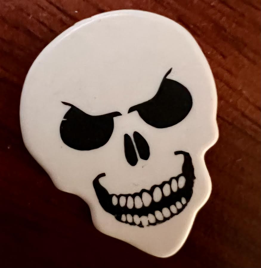 As I stared at the images of skulls on backpacks and stickers and all sorts of items around me, the shape reminded me of a guitar pick.